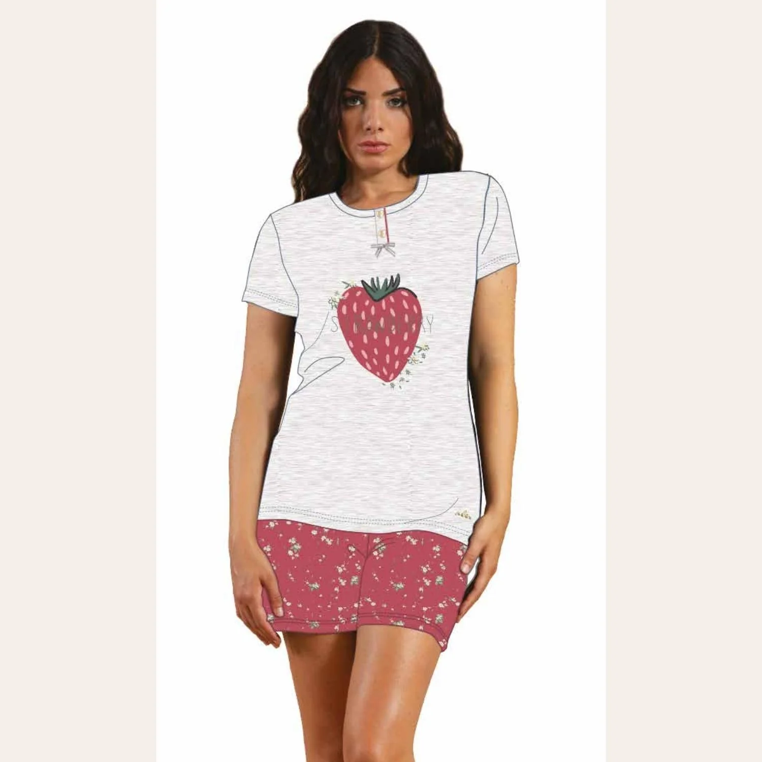 Y&m308 – You&me Pigiama Donna Corto Mezza Manica Stampato 3 Bottoni In Puro Cotone